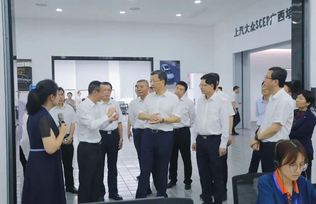 怀进鹏一行参观柳州铁一中学与三江中学、那坡中学结对帮扶成果展示 怀进鹏一行首先来到柳州铁一中学柳东校区,参观柳州铁一中学与三江中学、那坡中学结对帮扶成果展示区域,柳州铁一中学教共体合作馆,校园文化长廊,观摩柳州铁一中学和三江中学利用同步课堂平台进行的集体教研以及学校机器人舞蹈等科创活动,肯定学校近年来取得的教育教学成绩。 “柳州铁一中学校园很漂亮,老师、同学们能够在这样的环境里工作、学习,很幸福,你们要再接再厉,办好人民满意的教育。”怀进鹏称赞柳州铁一中学校园环境优美,勉励学校老师要珍惜当下,继续努力推进教育高质量发展,办好人民满意的教育。 怀进鹏一行在上汽大众广西培训中心调研 随后,怀进鹏一行来到柳州职业技术学院官塘校区,先后走进柳职院-柳工全球客户体验中心、工程实践中心、智能制造赋能中心、东风柳汽商用车产教融合基地、上汽通用五菱智慧汽车培训中心、上汽大众广西培训中心等场所。怀进鹏肯定了政府、企业、学校三方共赢的产教融合办学模式,对柳州职业技术学院校企合作共育应用型人才模式的探索与实践表示认可,赞扬学校人才培养模式有创新,充分发挥了职业院校人才培养的优势,培养出了大国工匠,并对学生积极投身创新创业表示肯定。 怀进鹏强调,柳州要进一步探索职业教育联合企业、产业走出去在国外办学的产教融合模式,职业教育要走新路,解决新问题的关键是要为东盟合作创造新机遇;柳州要设立产教联合体,加大量化研究,深化产教融合探索,形成符合地方实际的现代职业教育体系;要结合本地自身的区域特点,做好校企培训的顶层设计,形成服务地方的职教集团;职业院校应更多地与国内重点高校展开合作,鼓励更多的学生敢于创新创业。 怀进鹏一行在柳职院-柳工全球客户体验中心调研 怀进鹏与党的二十大代表、大国工匠、国家级技能大师郑志明交谈