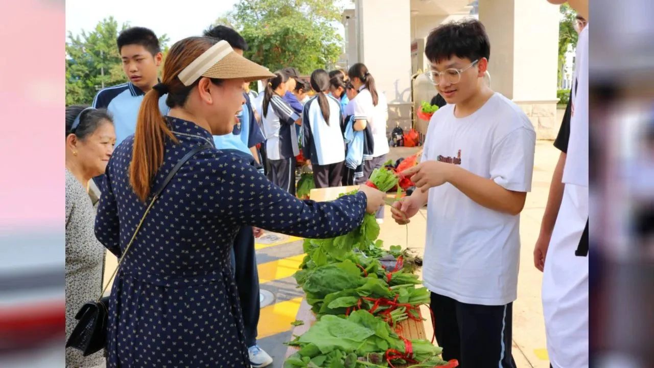 近日,南宁市邕宁高级中学组织学生开展劳动实践基地有机蔬菜采摘、义卖活动。同学们走进学校劳动实践基地有机蔬菜种植园,采摘、挑拣、清洗新鲜蔬菜,吸引过往的学校教师、社区居民纷纷前来购买。义卖所得款项将继续用于学校劳动教育及爱心事业。(通讯员:谢秋蝶 李思霖)