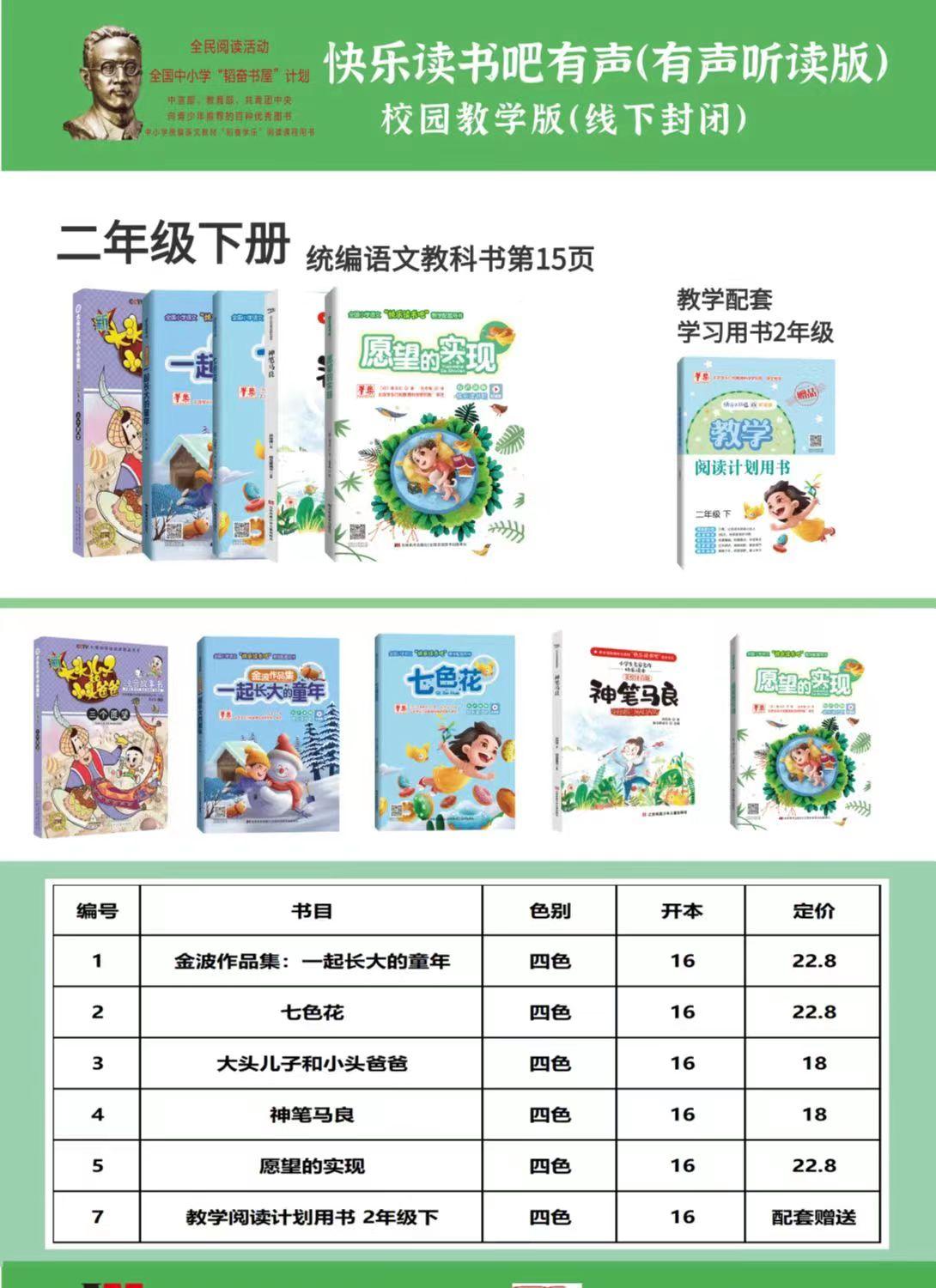 快乐读书吧 二年级 下册(一套6册:金波作品集、一起长大的童年、七色花、大头儿子和小头爸爸、神笔马良、愿望的实现、教学配套学习用书)