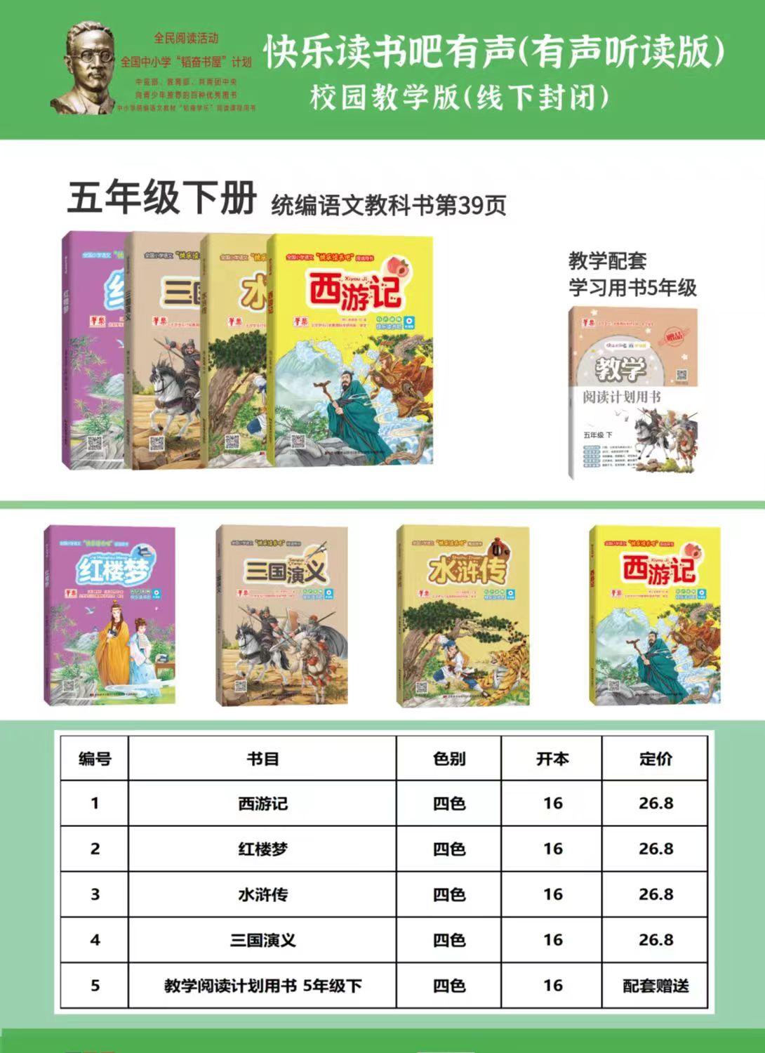 快乐读书吧 五年级 下册(一套5册:西游记、红楼梦、水浒传、三国演义、教学配套学习用书)